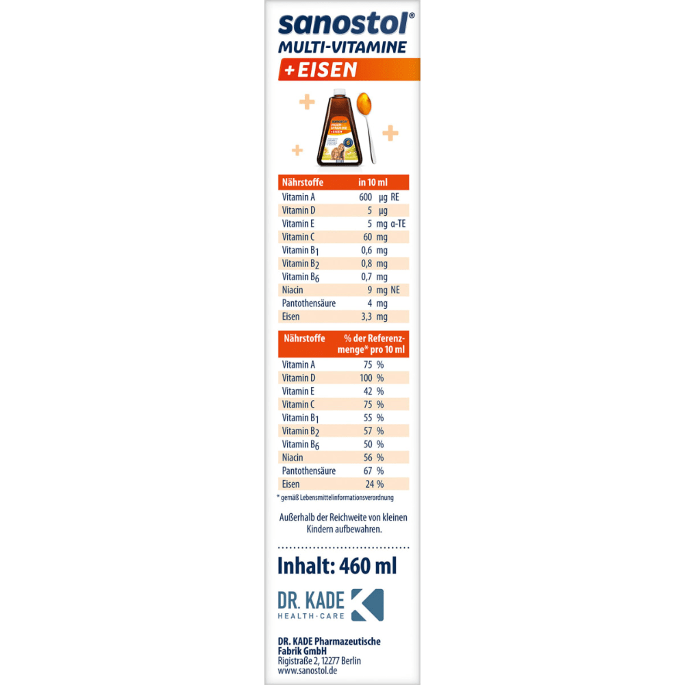 Siro Sanostol Số 6 Bổ sung Vitamin Tổng hợp + Sắt cho bé từ 6 tuổi 460ml